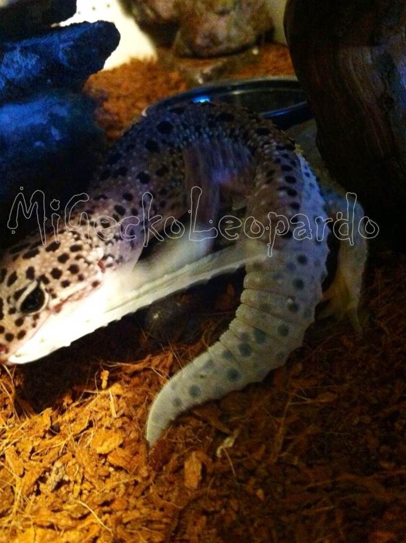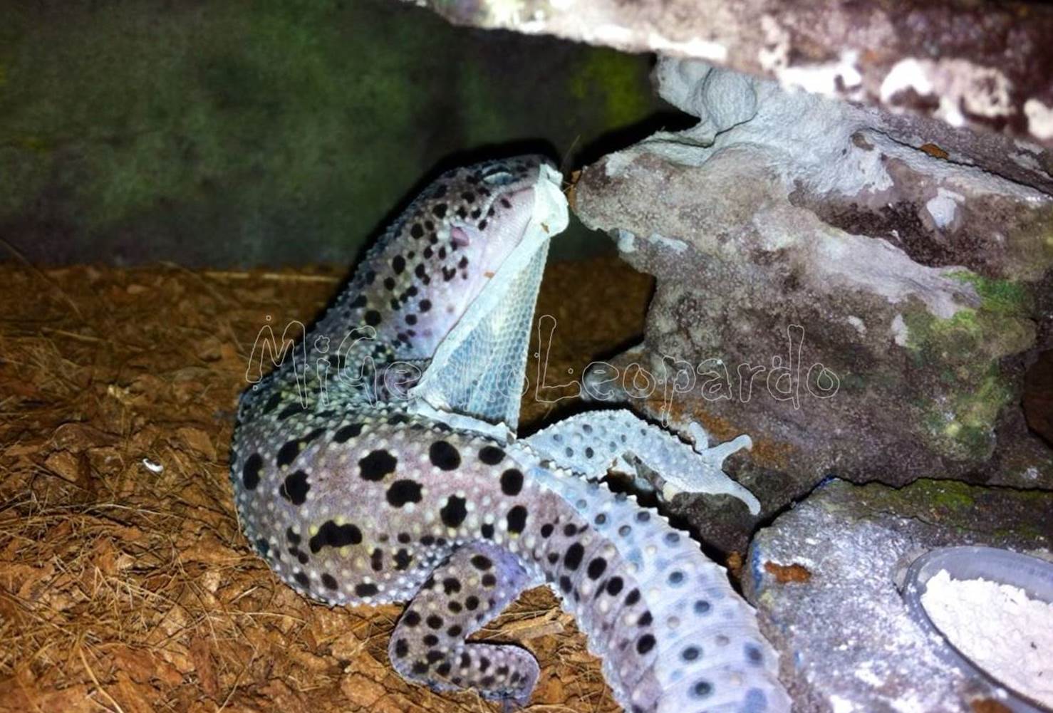 -Los Geckos con carencias de calcio, con EMO (enfermedad metabólica ósea) o que no tienen a disposición una cueva húmeda pueden presentar retención de muda, es decir restos de la vieja piel en varias zonas del cuerpo, aunque más a menudo en ojos y puntas de los dedos, esto a largo plazo, y si se acumulan unas encima de otras varias capas de piel, lleva a disminución de la vista (ceguera) y a necrosis de los dedos.