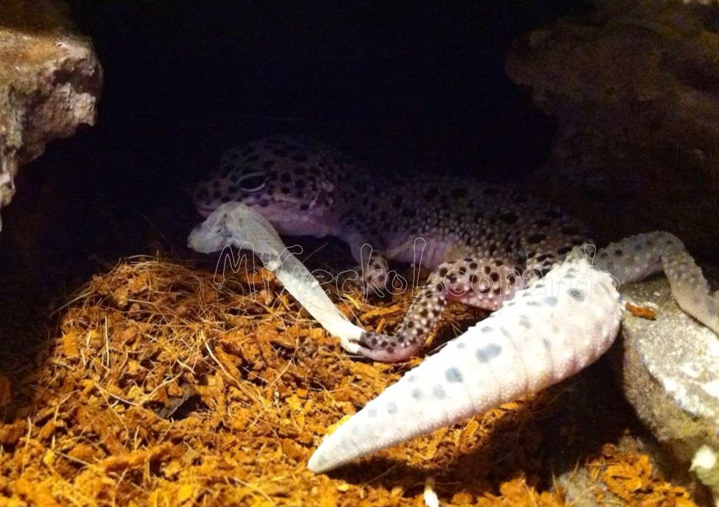 -Los Geckos a través de hormonas/feromonas (señales químicas) dejan un rastro de olor que proporciona información valiosa a otros ejemplares, por ejemplo sobre territorio y ovulación, la prueba de la presencia de tales olores se puede comprobar fácilmente acercando un macho al terrario de una hembra receptiva, podréis observar que antes de entrar en el terrario y de haber visto la hembra, el macho ya estará moviendo la cola de forma frenética, es decir habrá detectado la presencia de una posible pareja sexual. Durante la muda, las hembras podrían no ser reconocidas por los machos como posibles parejas debido a una disminución/ausencia de tales señales y podrían por lo tanto ser atacadas (rivalidad por el territorio). Por esto es aconsejable evitar juntar macho y hembra por primera vez durante las mudas.